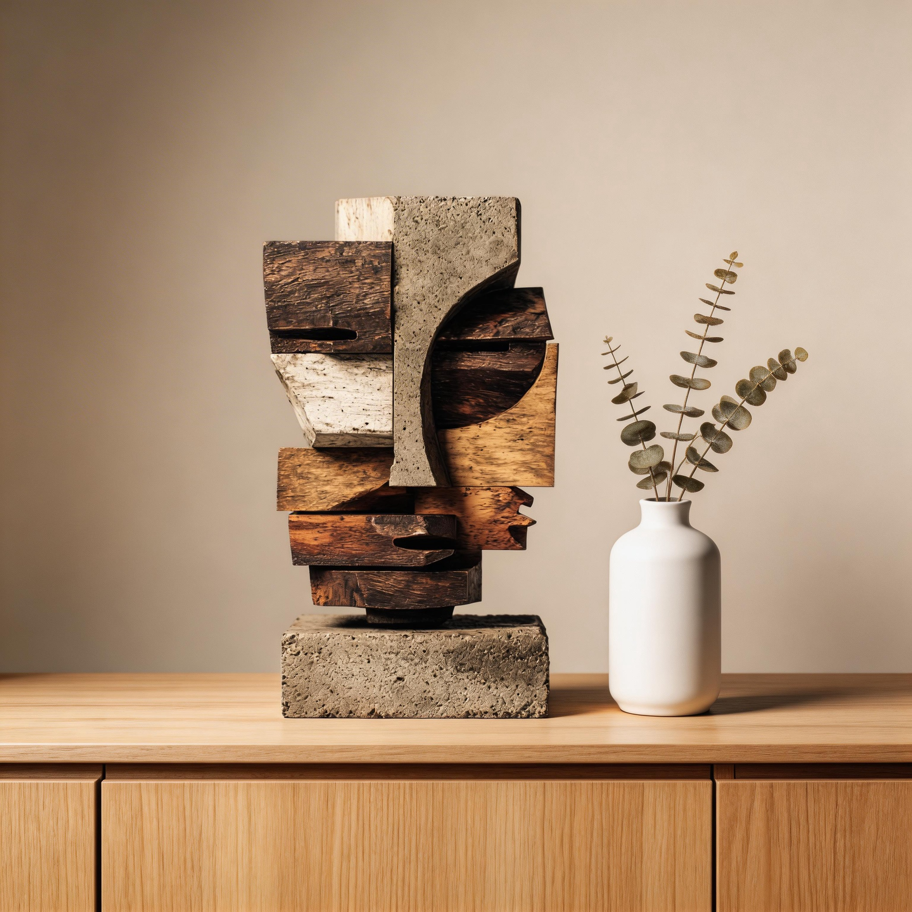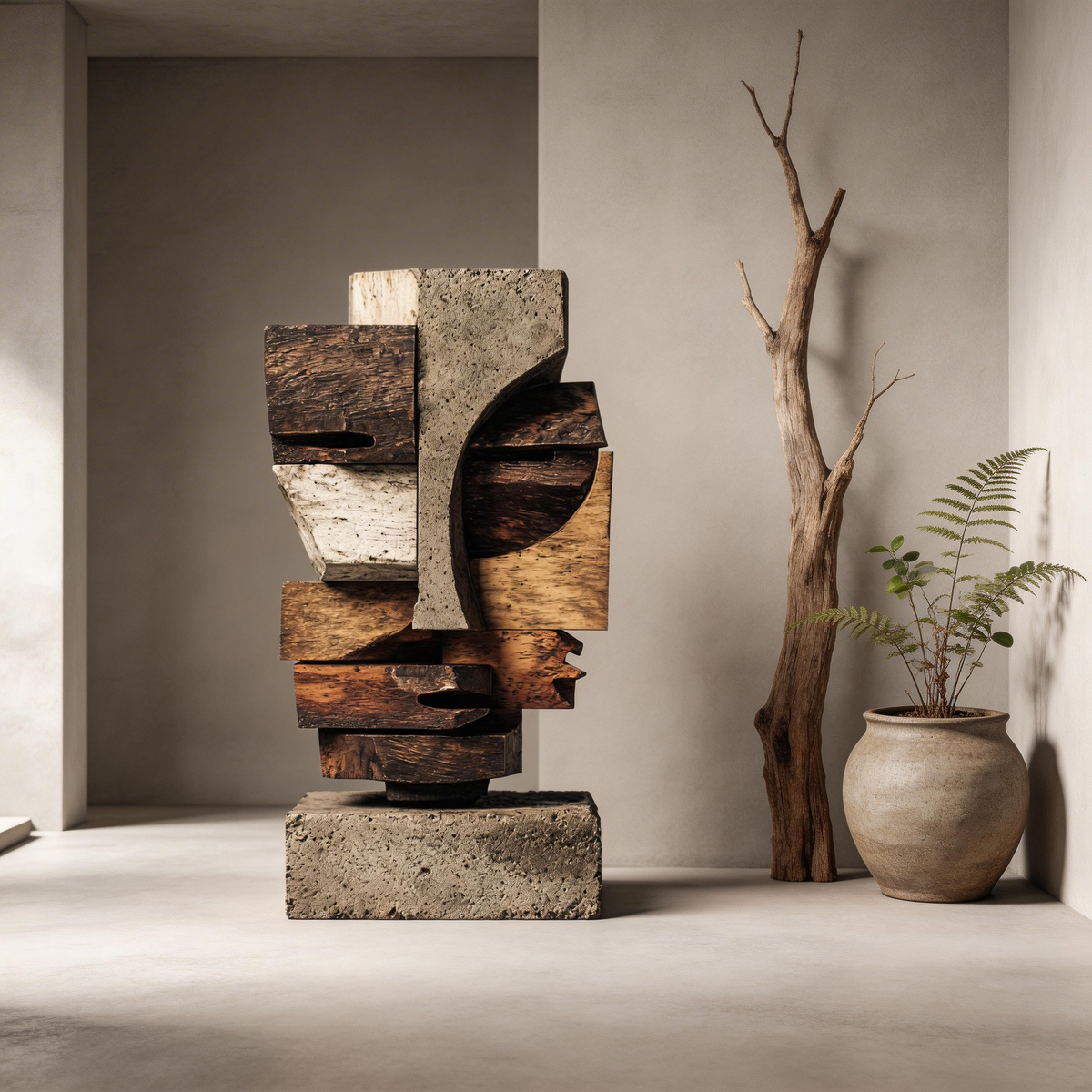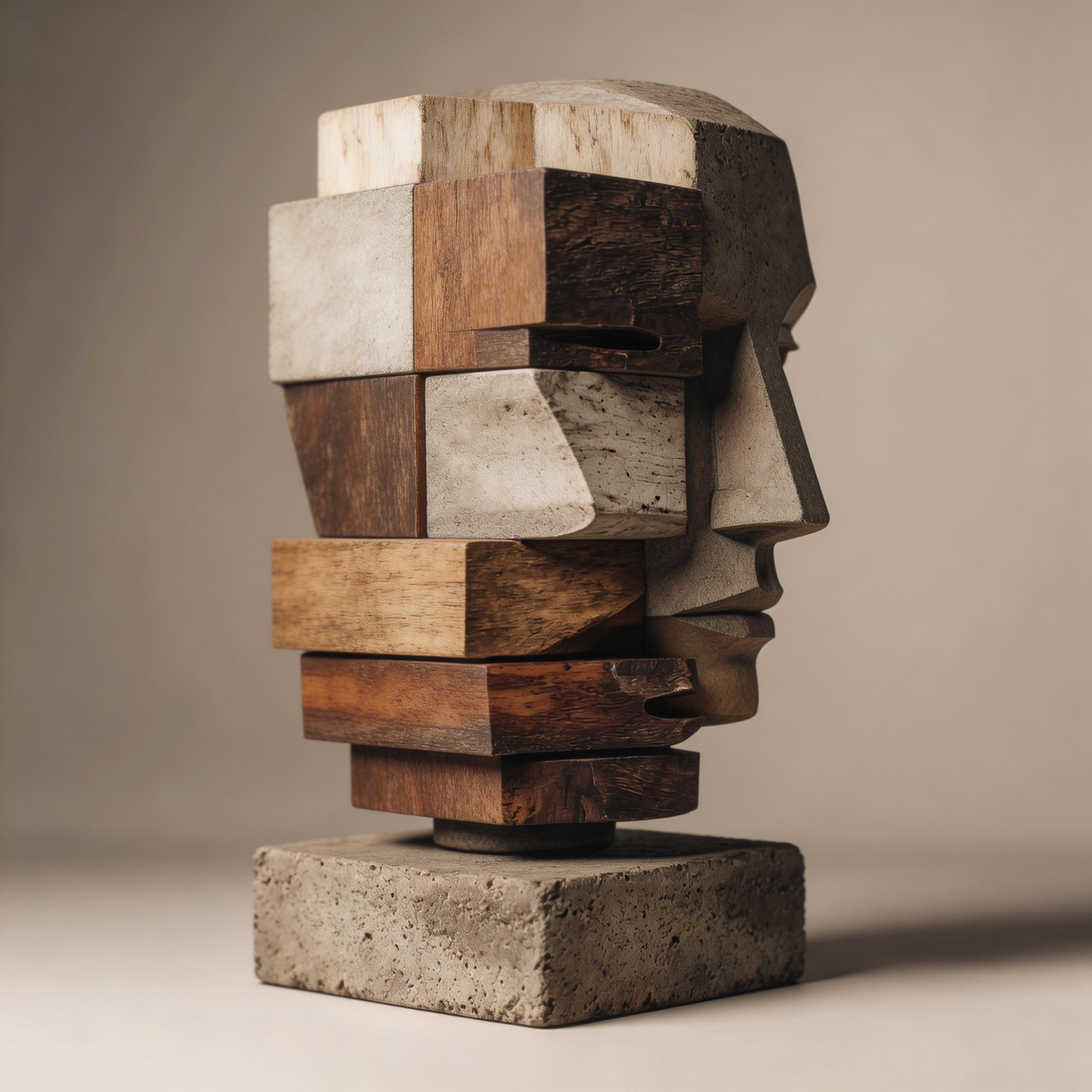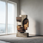 Concrete & Wood: Cubist Fragment| Wood Sculpture
