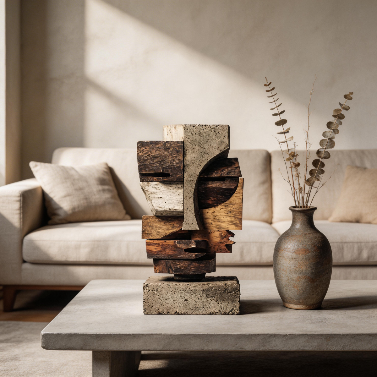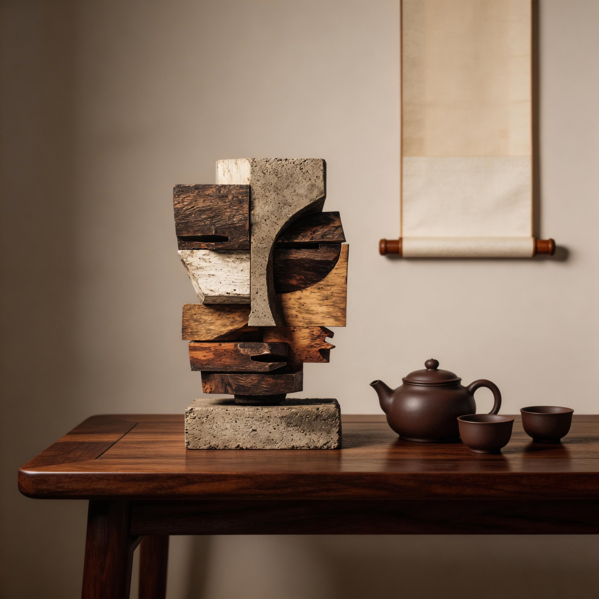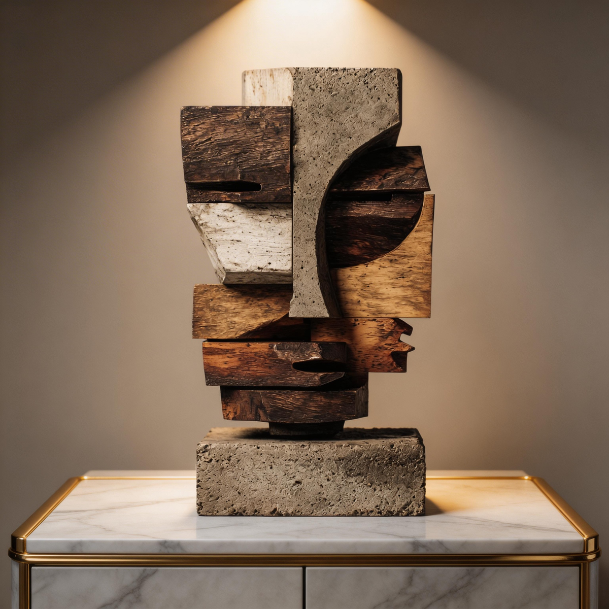 Concrete & Wood: Cubist Fragment| Wood Sculpture