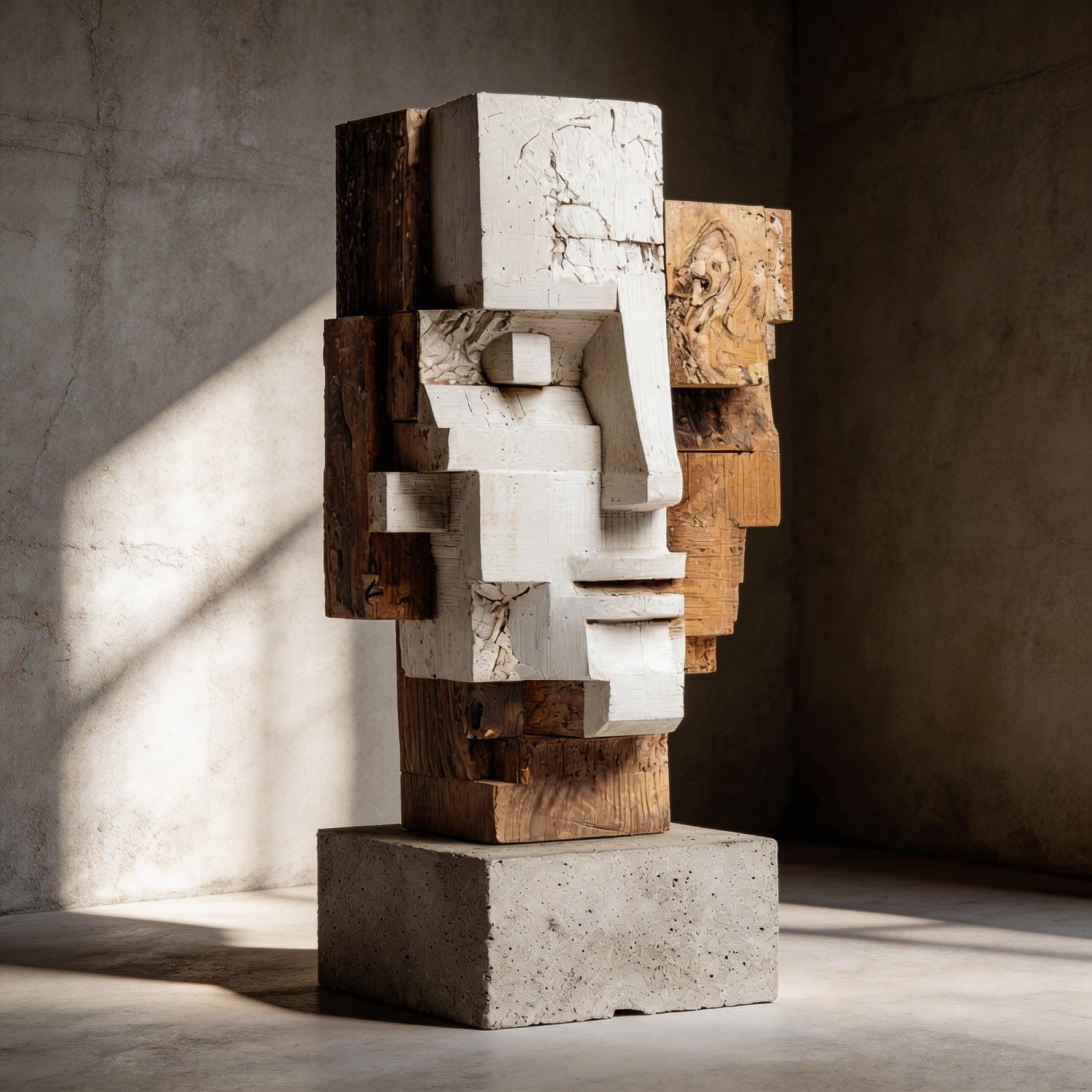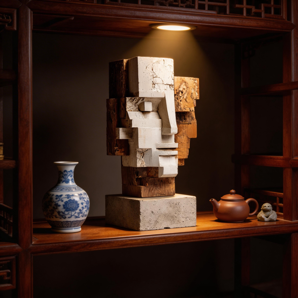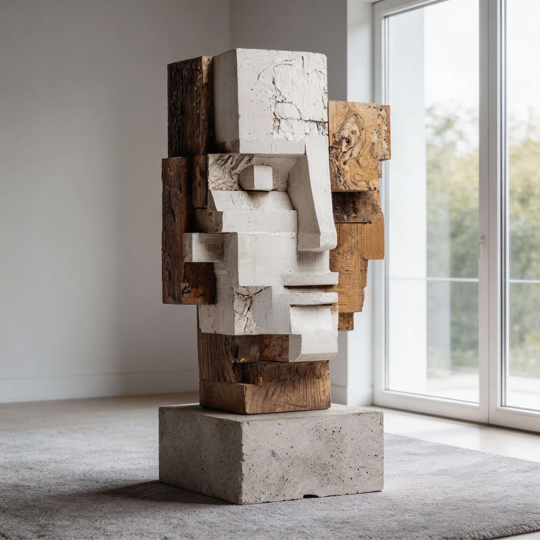 Dual Perspective: The Layered Cubist Visage| Wood Sculpture