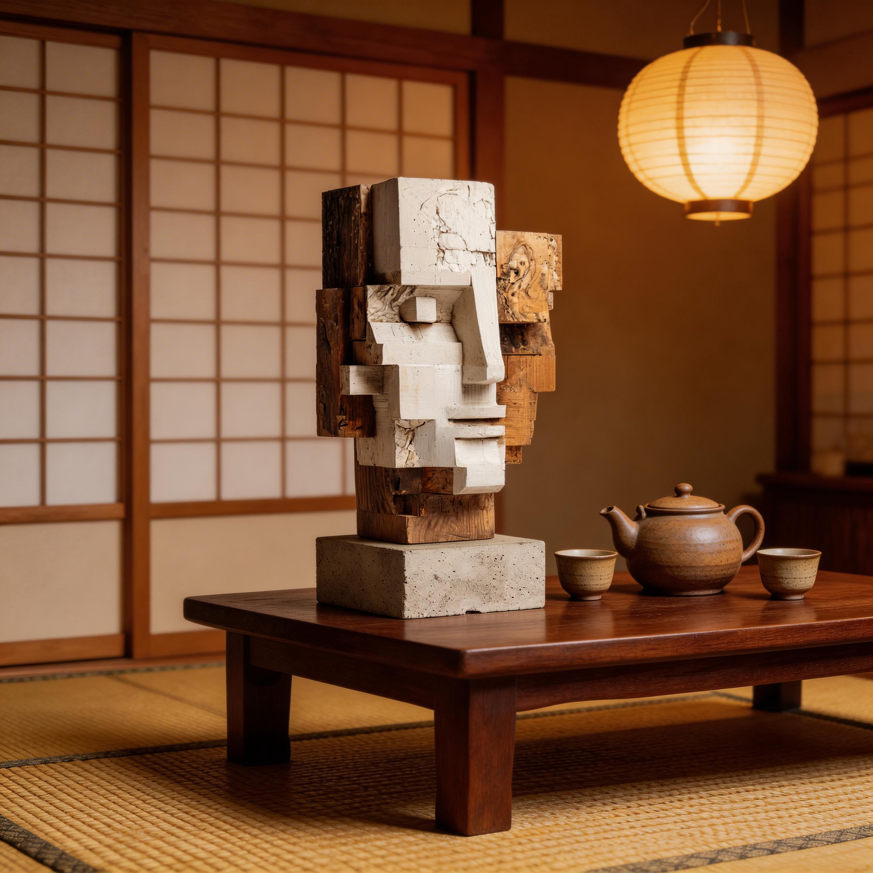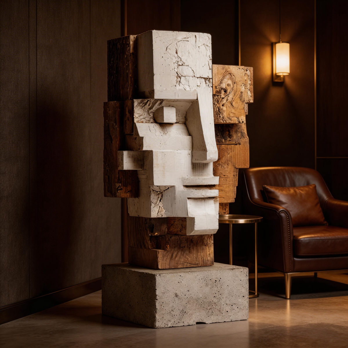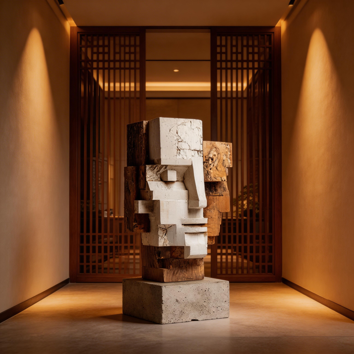 Dual Perspective: The Layered Cubist Visage| Wood Sculpture