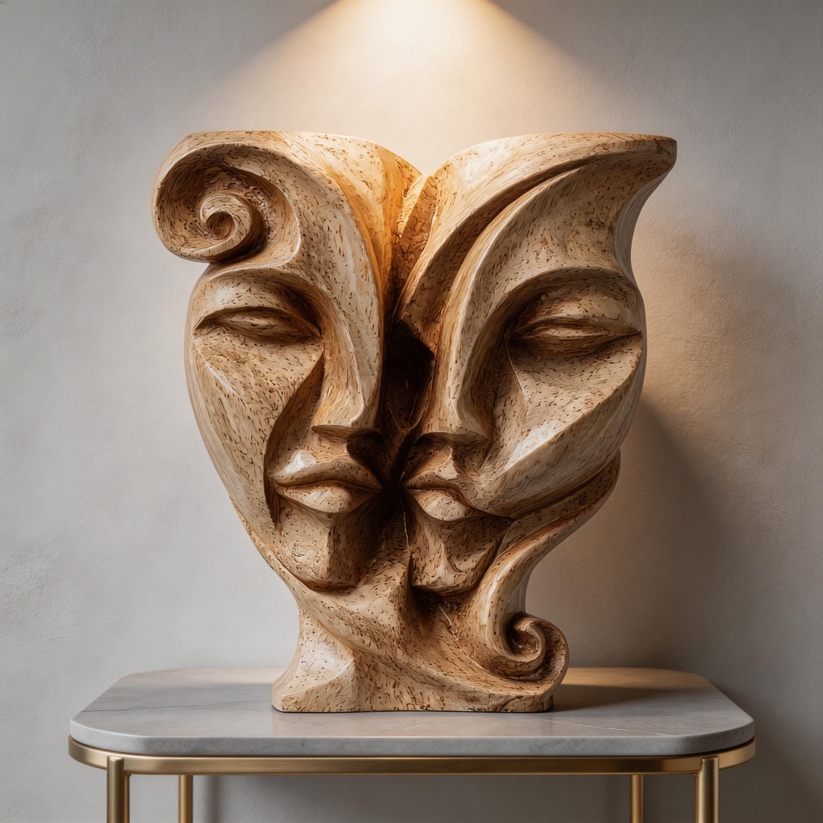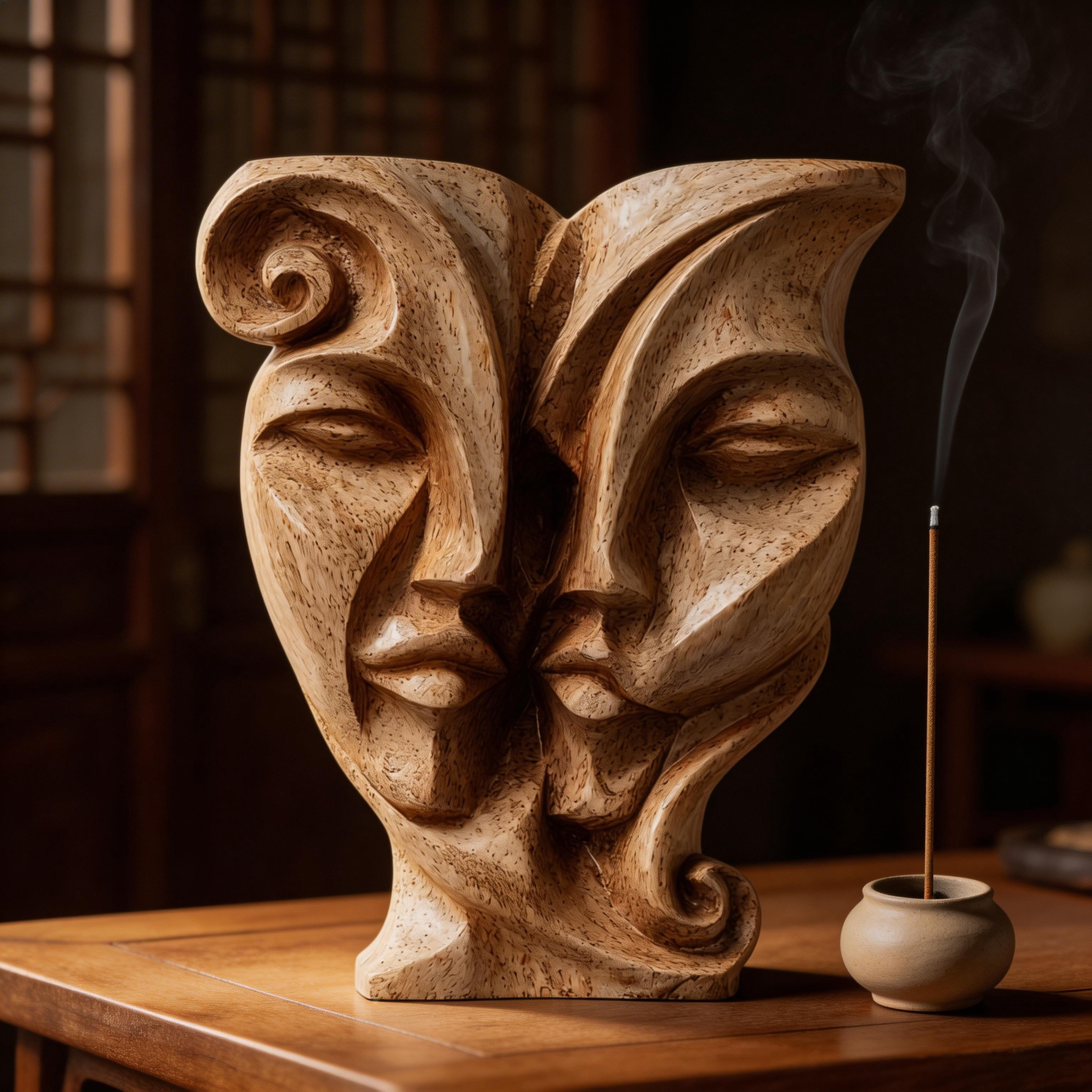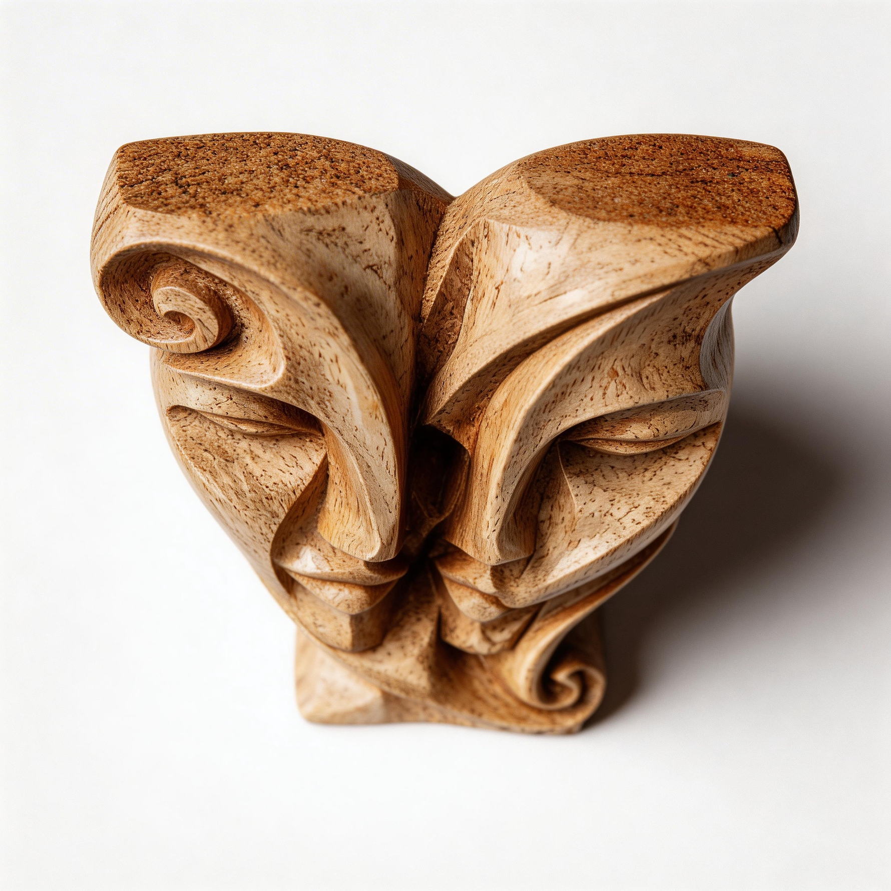 Soul Mates: The Entwined Visage| Wood Sculpture