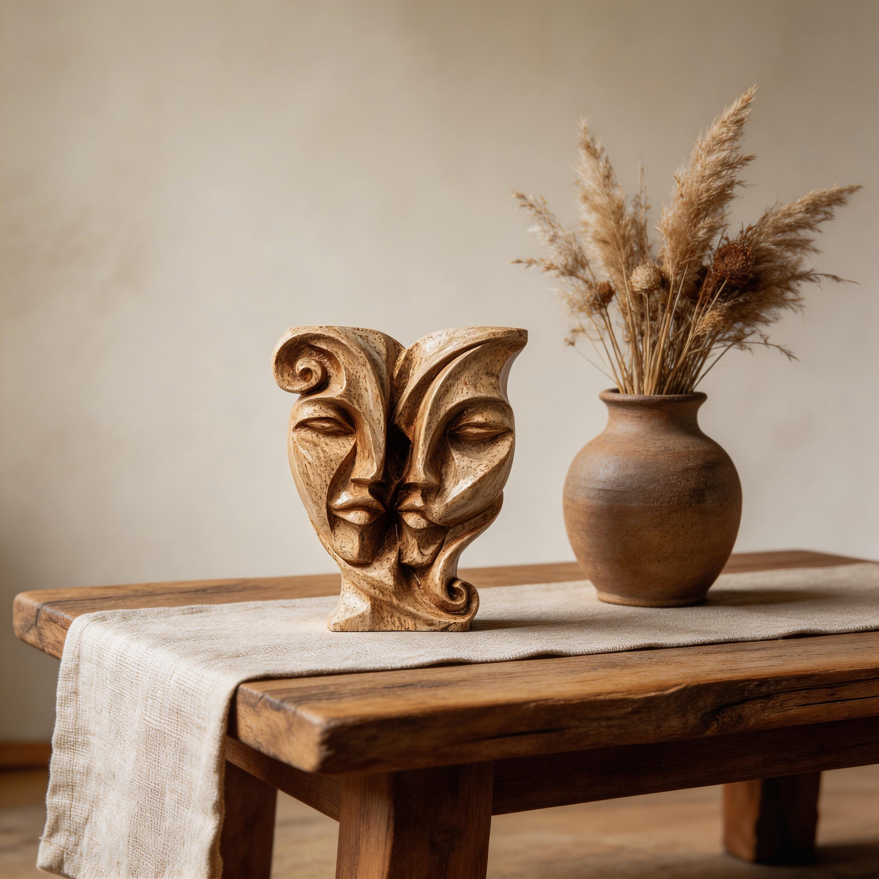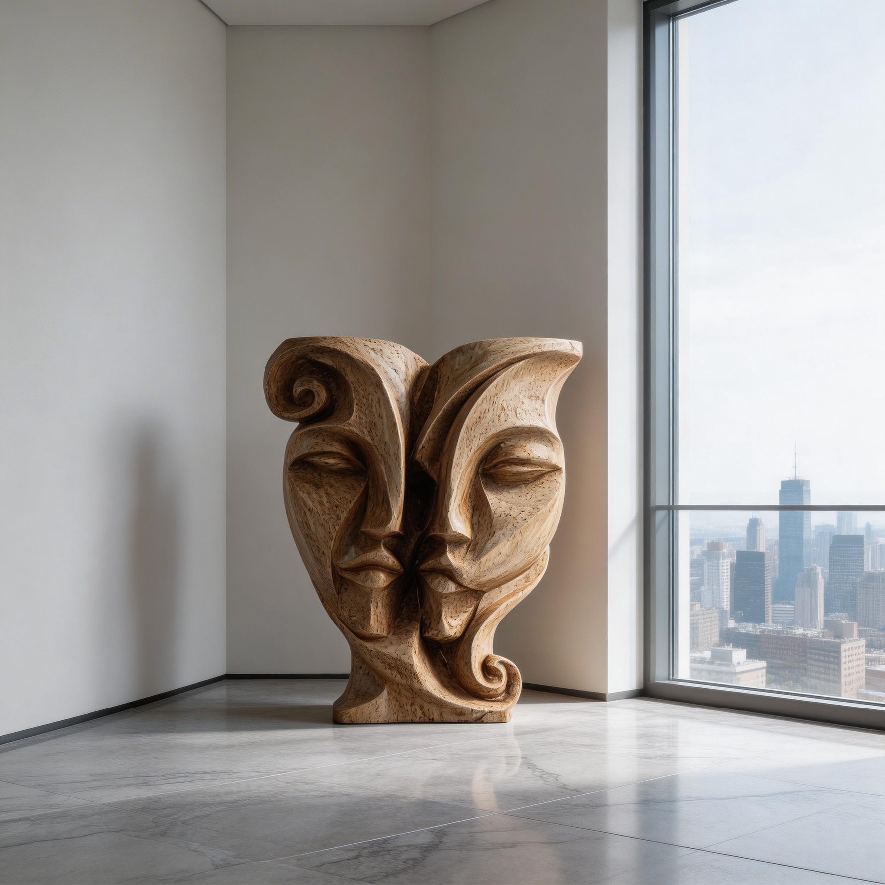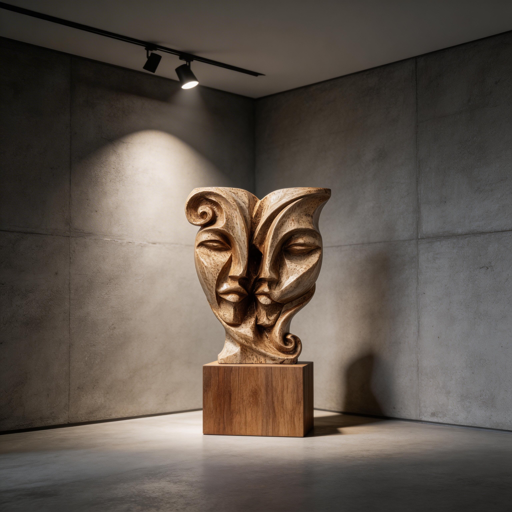 Soul Mates: The Entwined Visage| Wood Sculpture