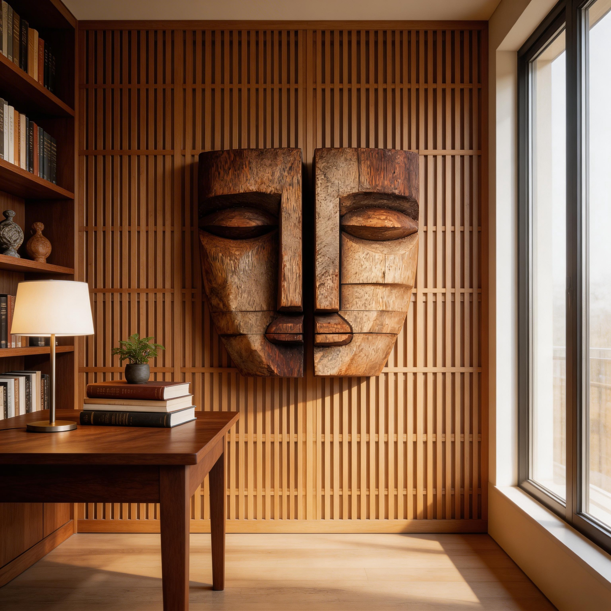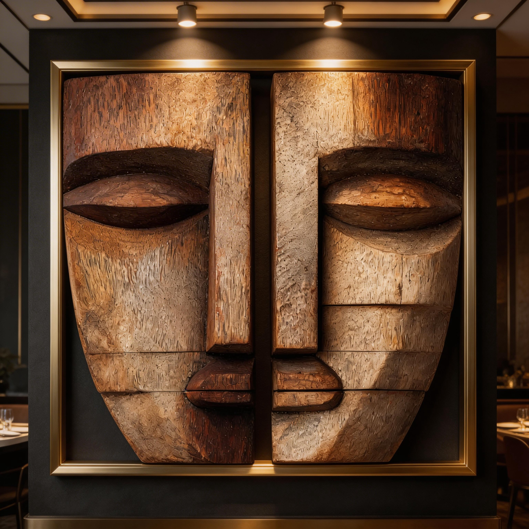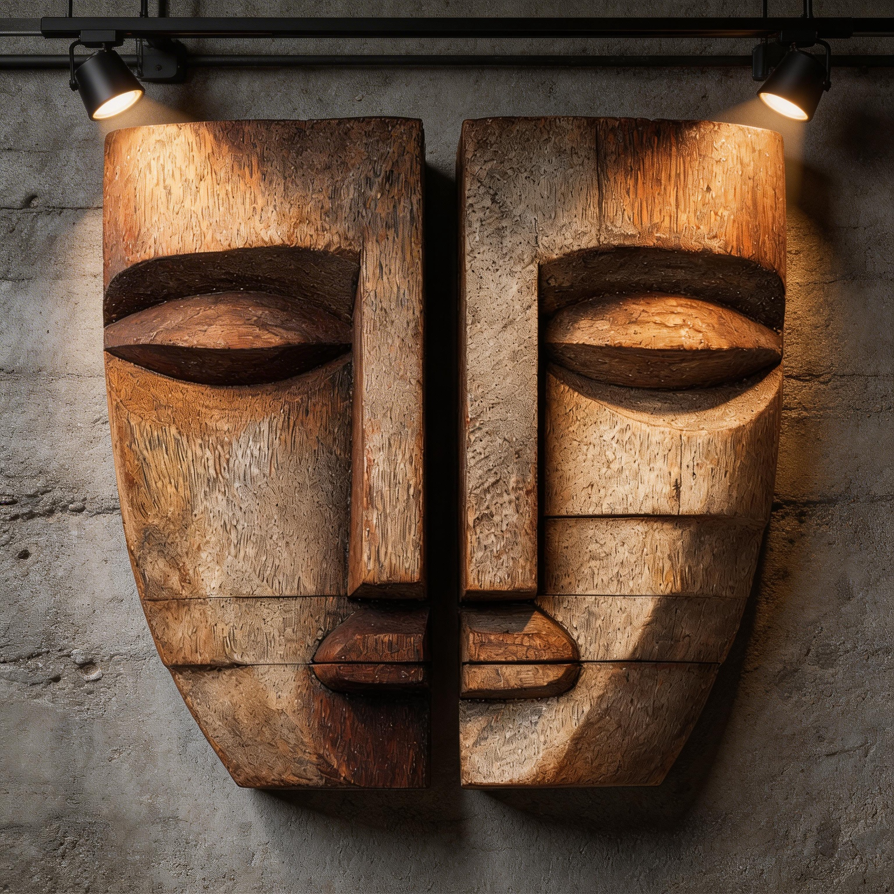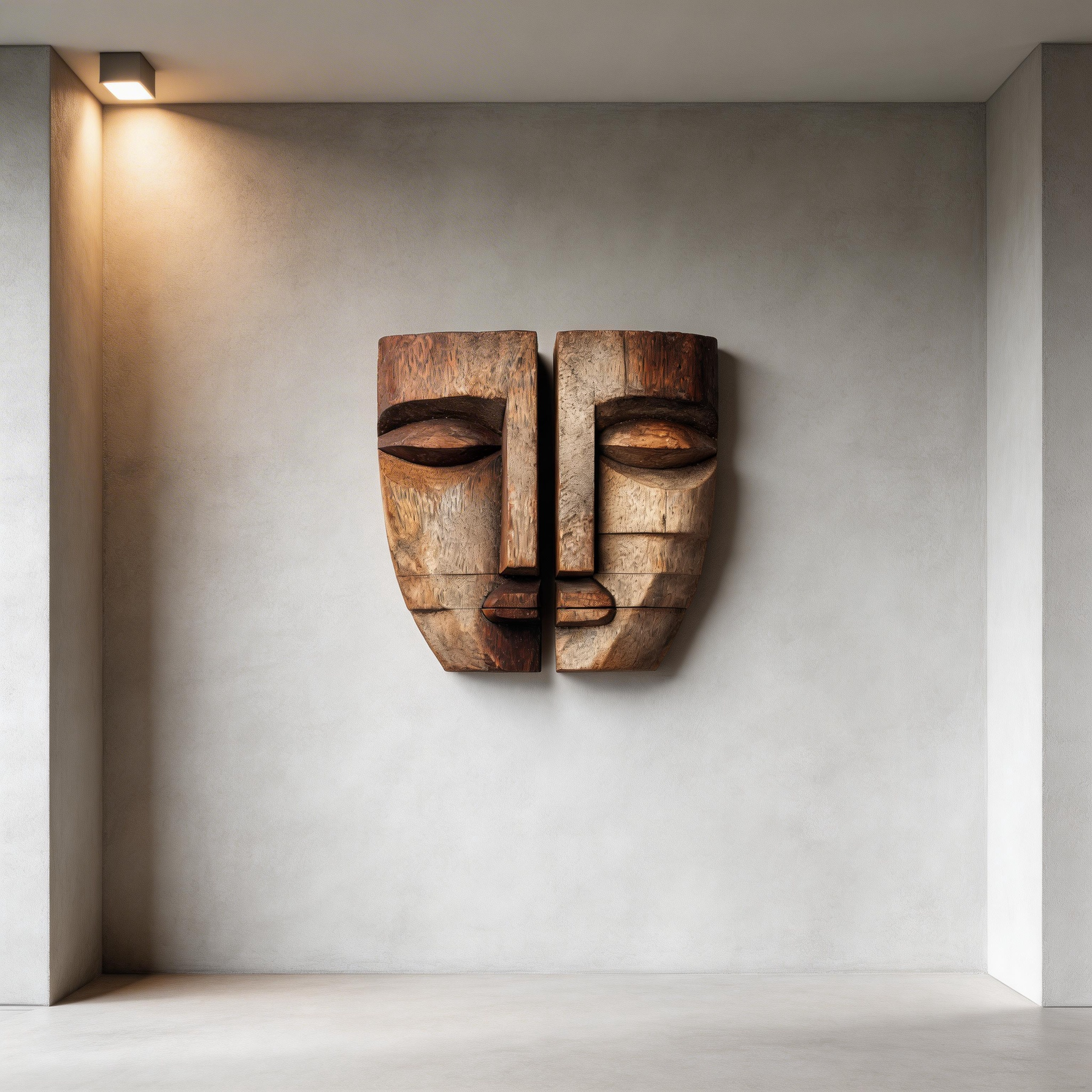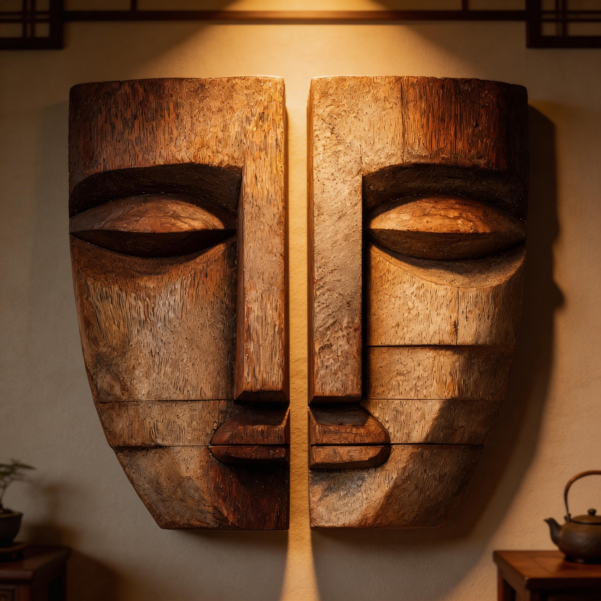 Split Duality: The Abstract Wood Face Masks |Wood Sculpture