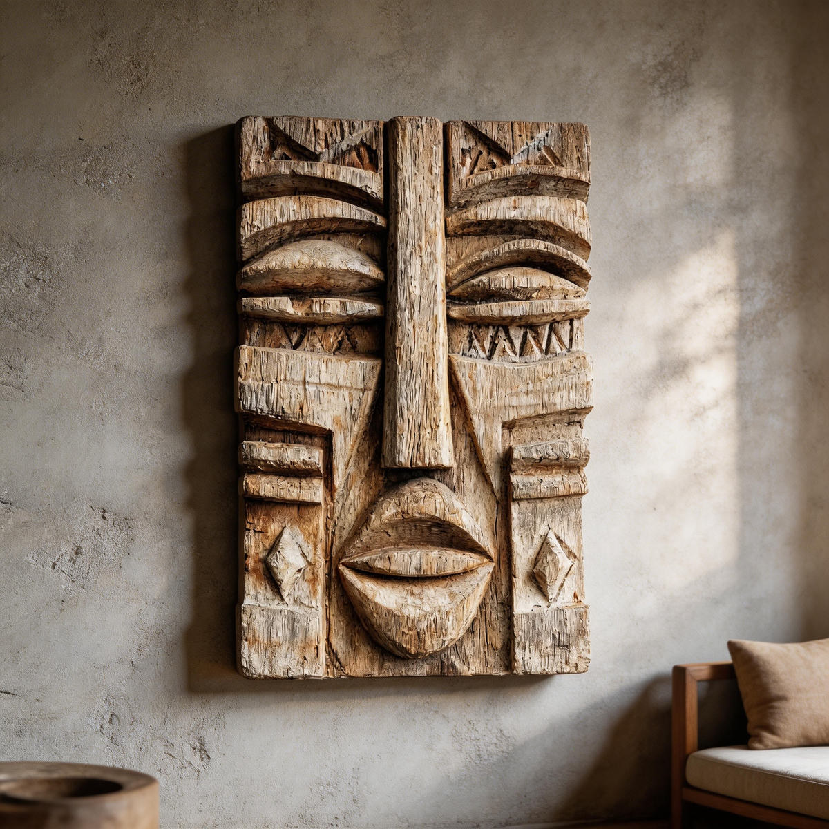 Tribal Totem: The Layered Carved Wood Face Mask |Wood Sculpture