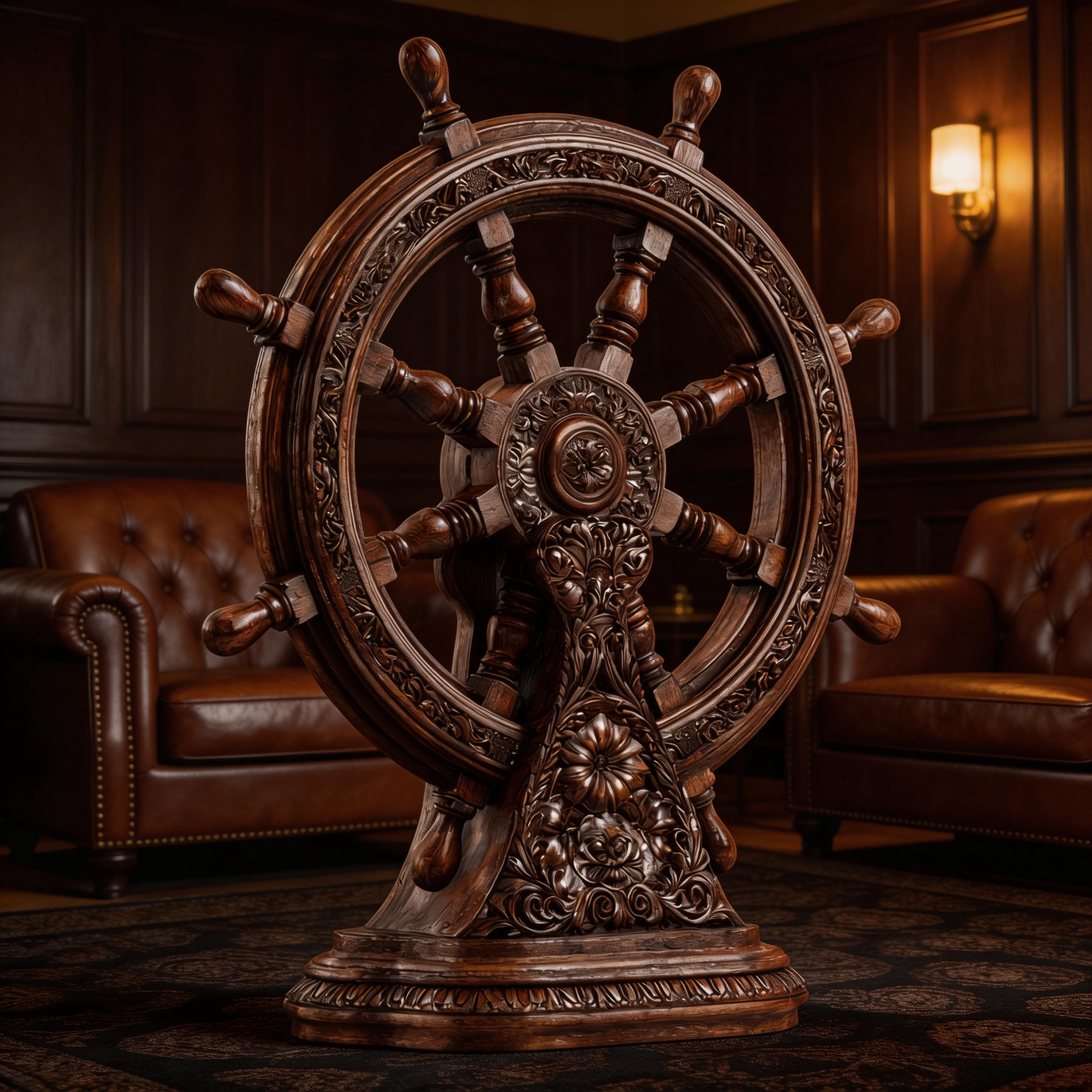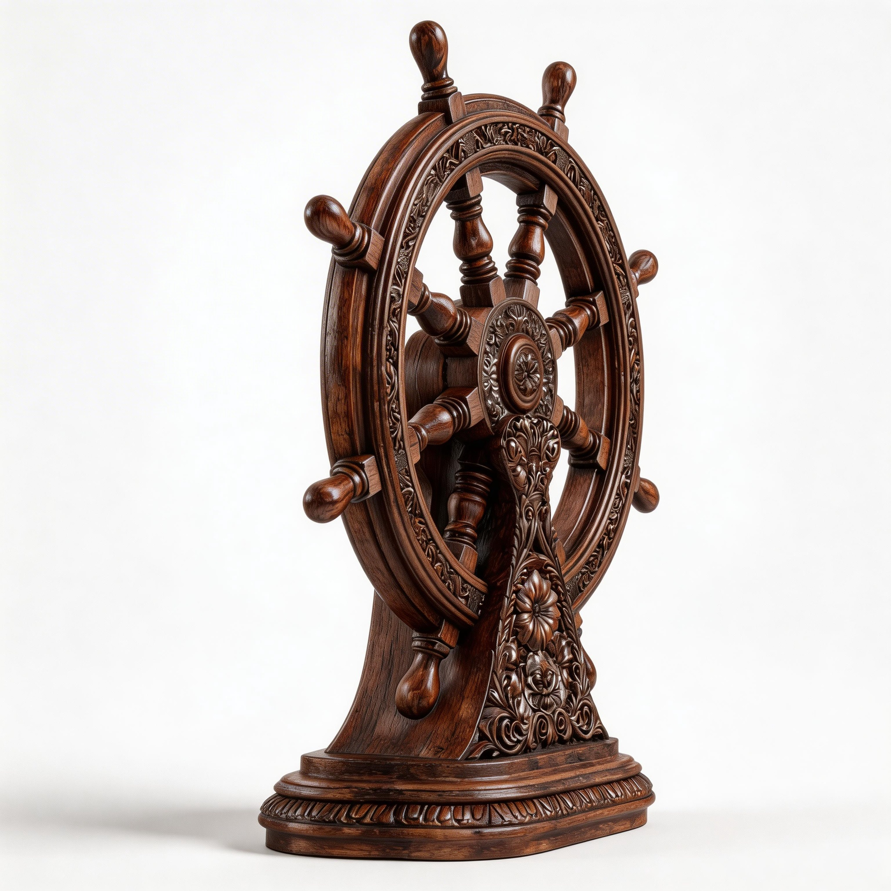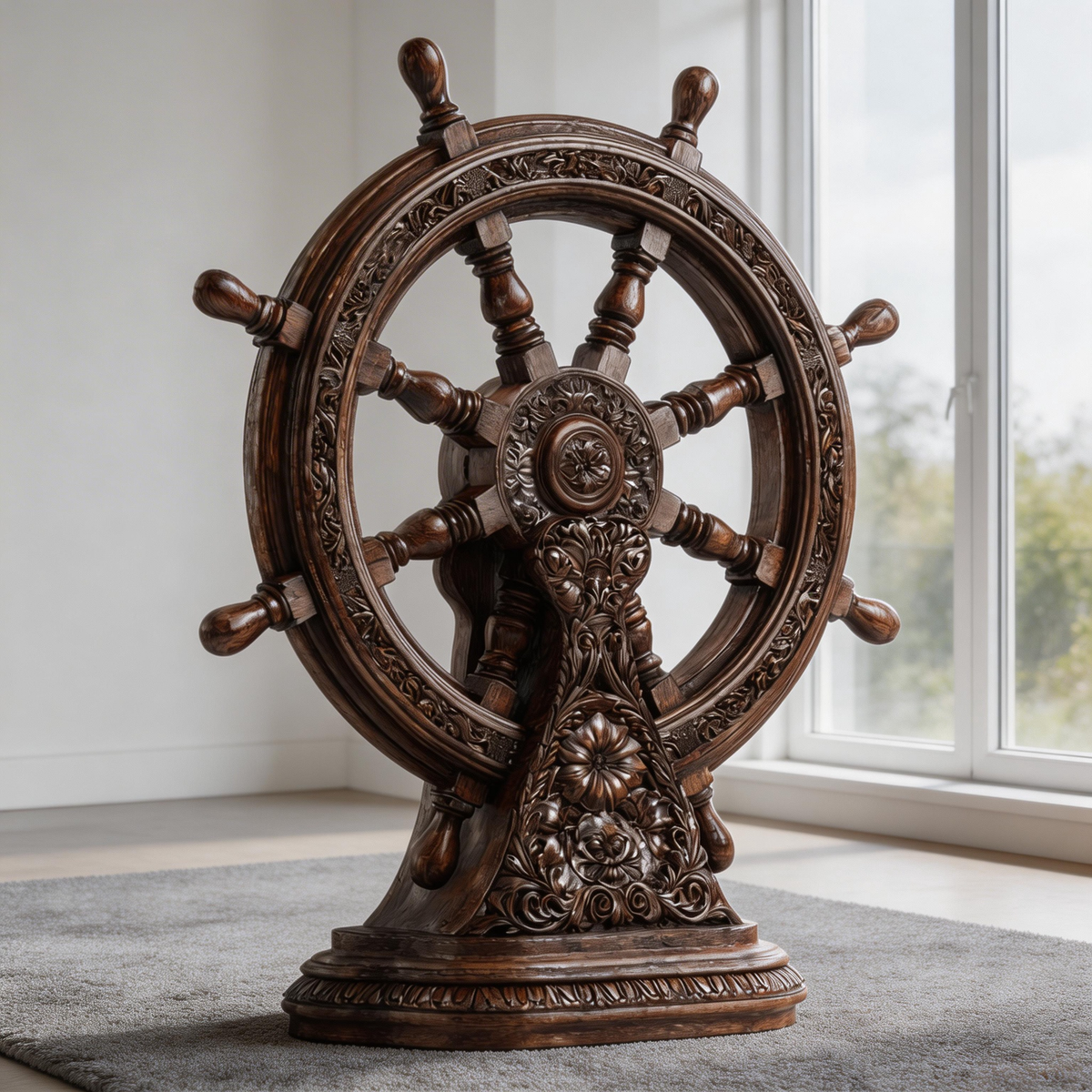 Voyager’s Grandeur: The Ornate Carved Helm | Wood Sculpture