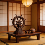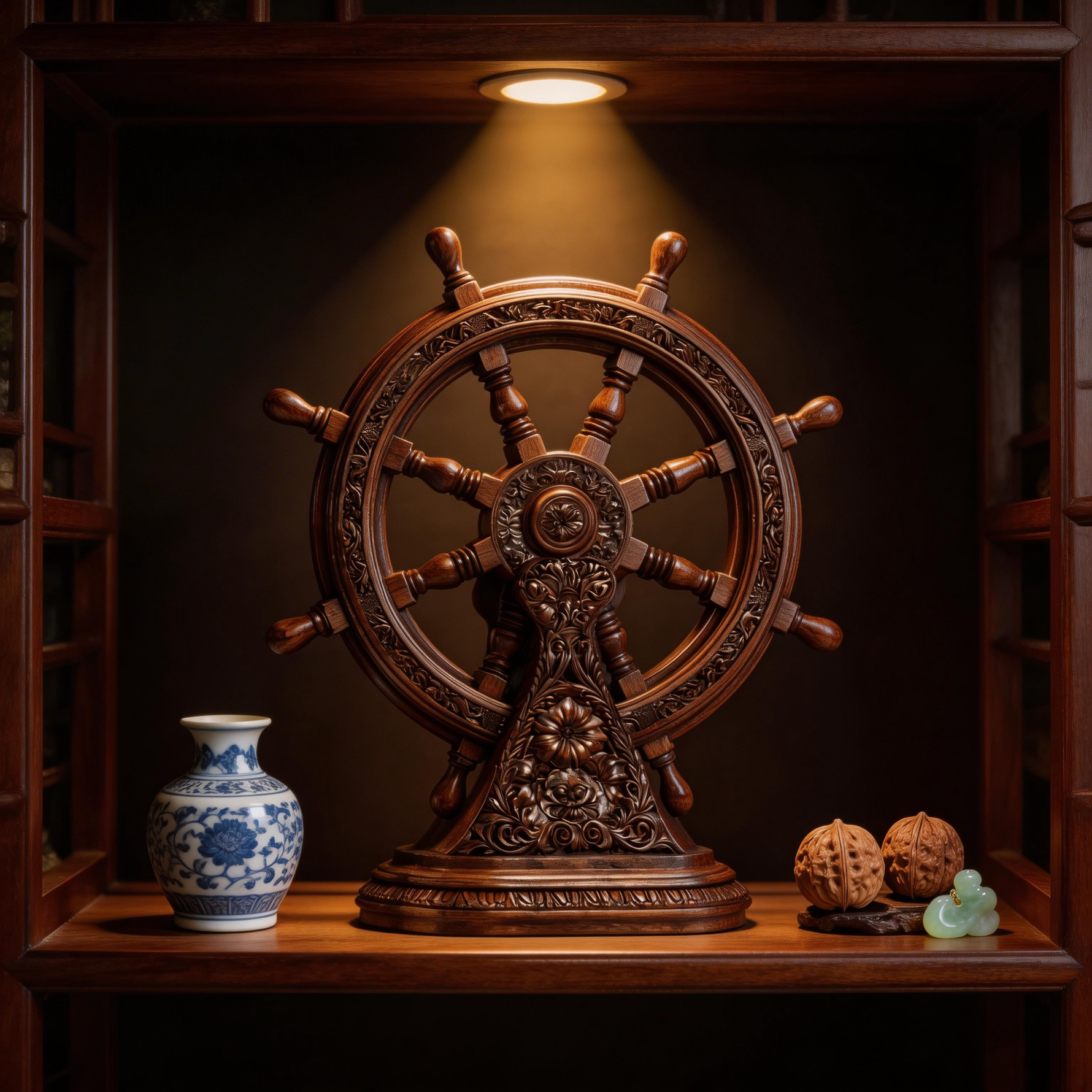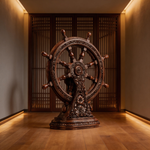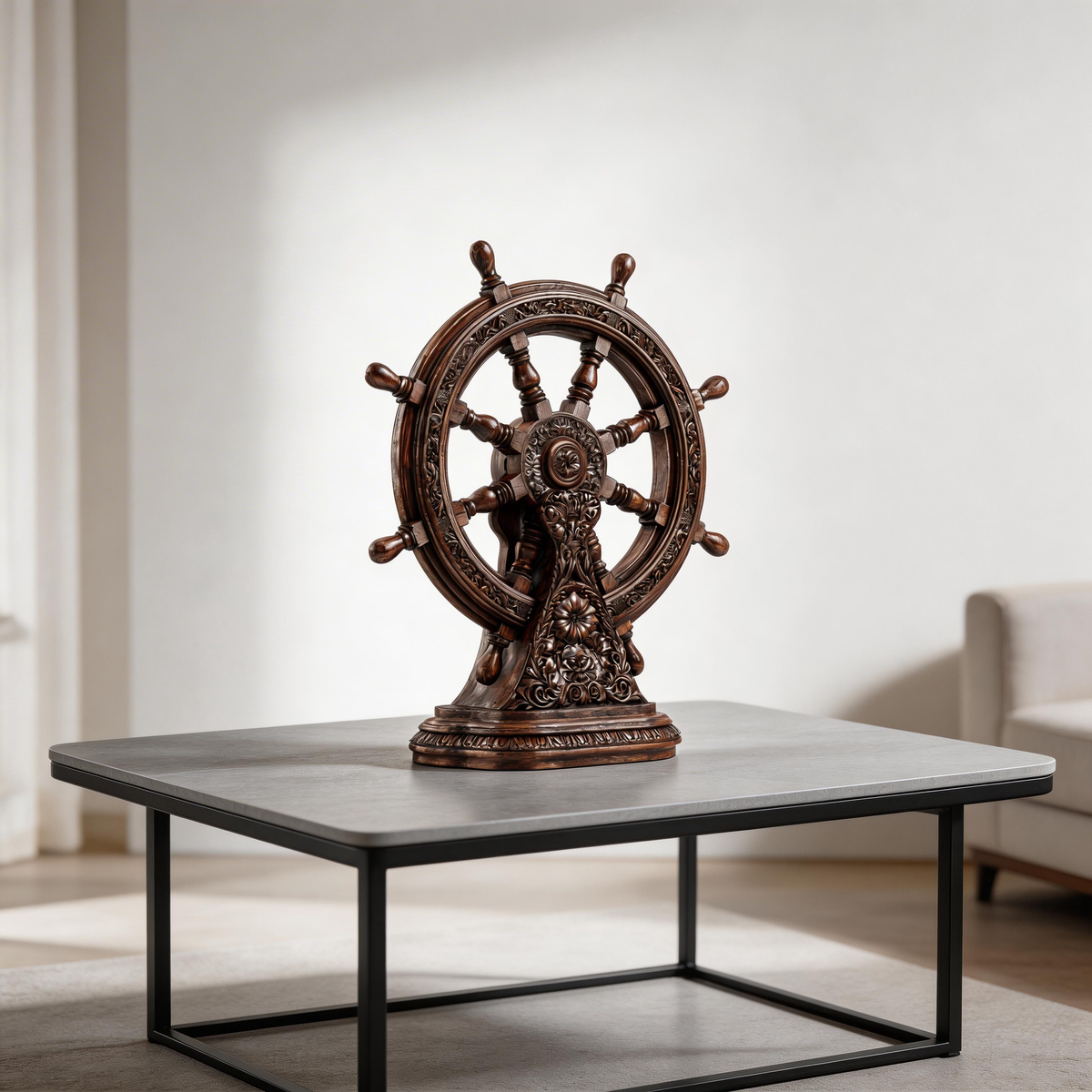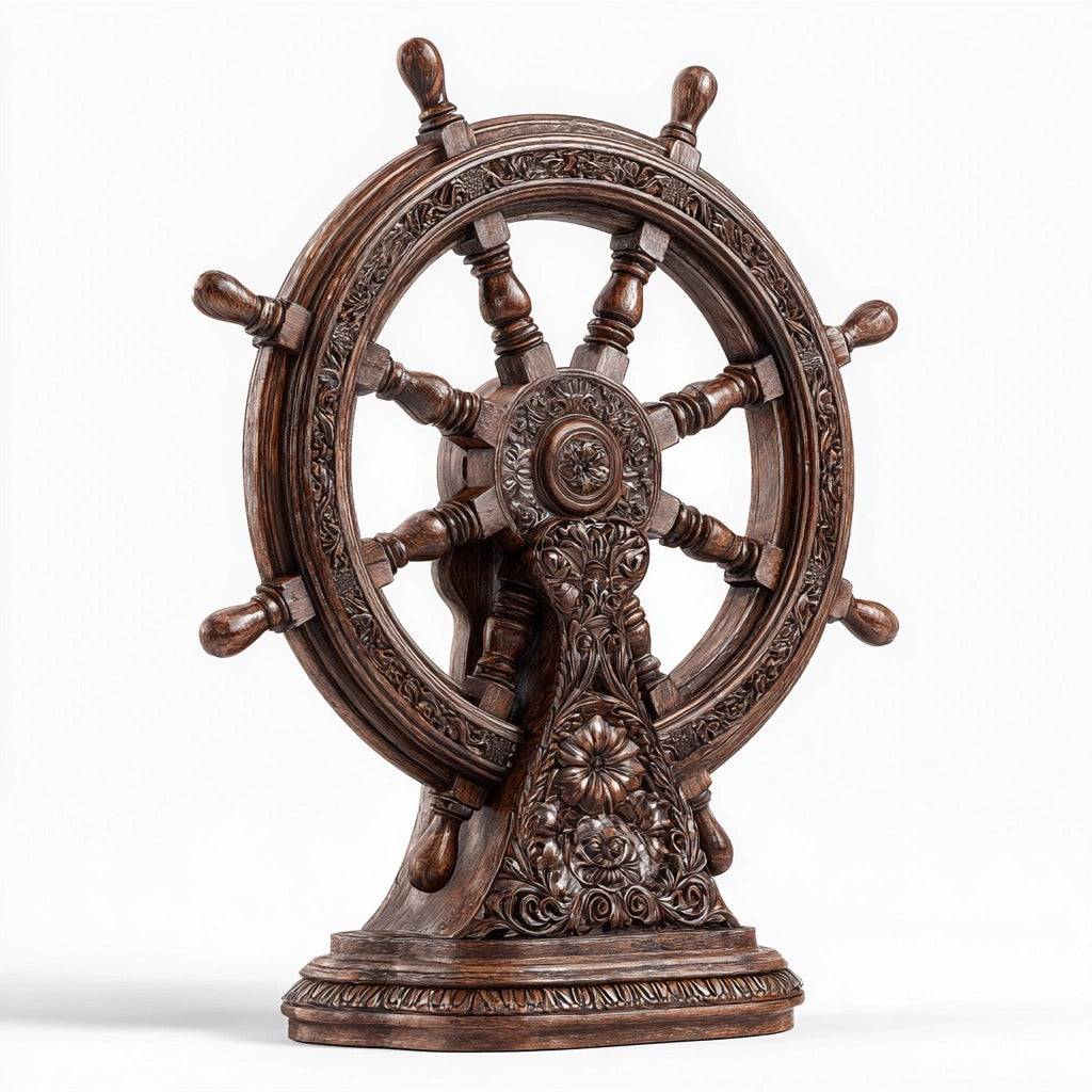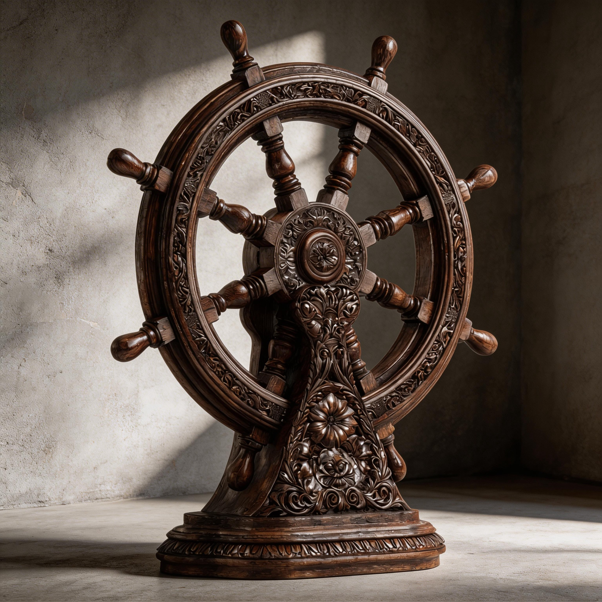 Voyager’s Grandeur: The Ornate Carved Helm | Wood Sculpture
