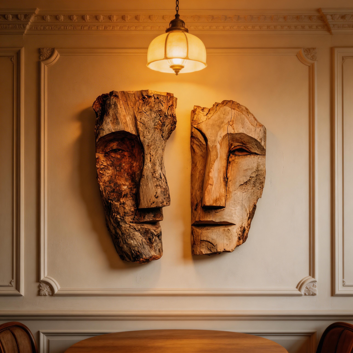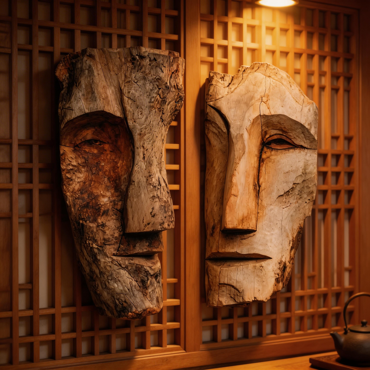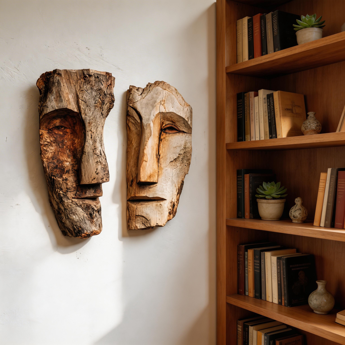 Dual Duality: The Contrast Wood Face Masks|Wood Sculpture