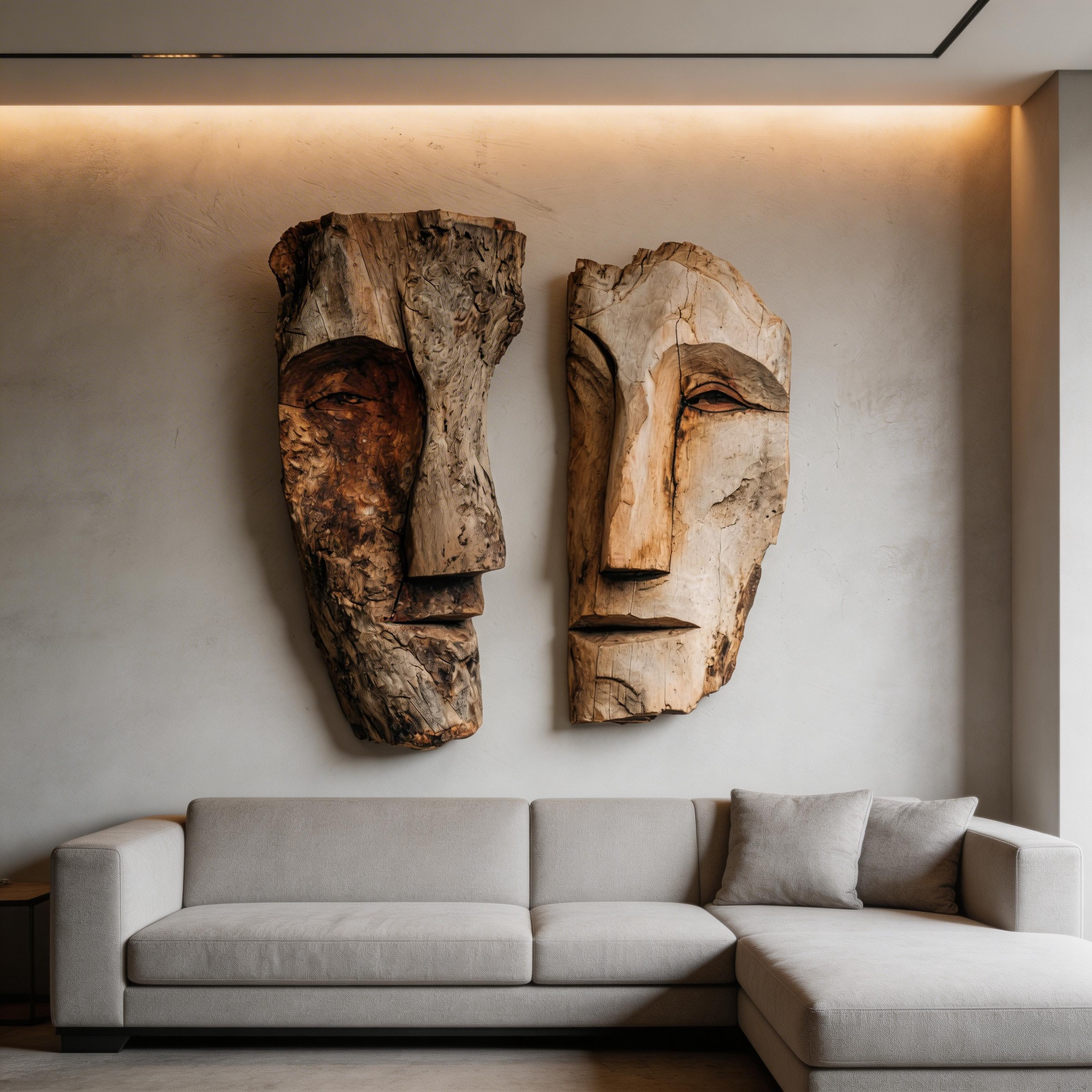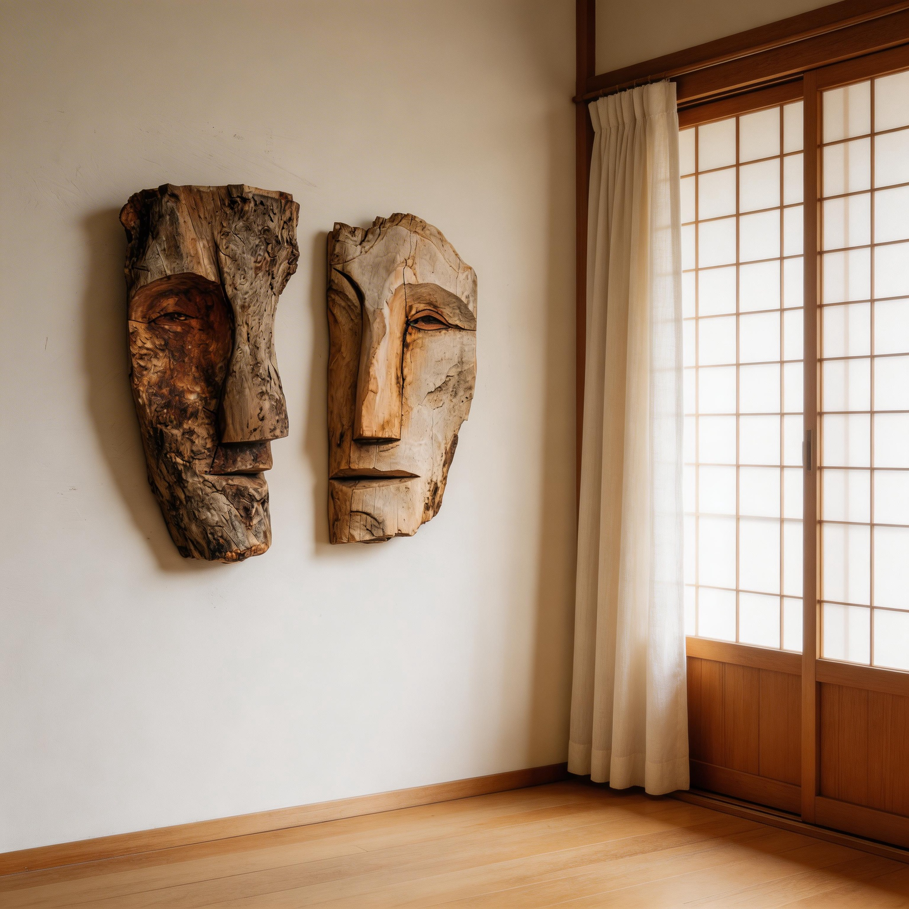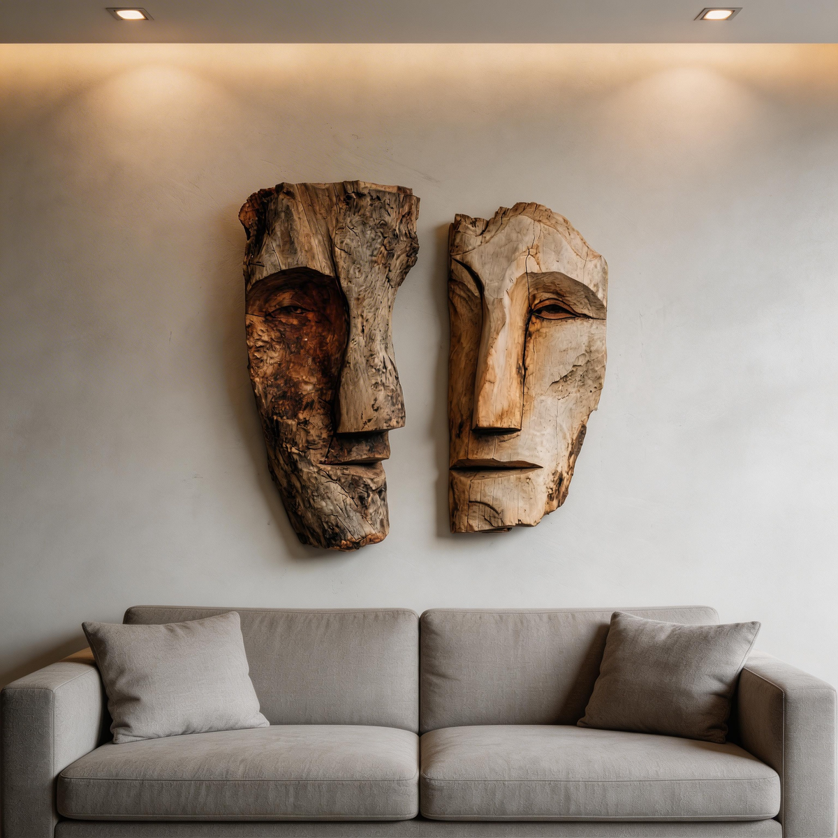 Dual Duality: The Contrast Wood Face Masks|Wood Sculpture