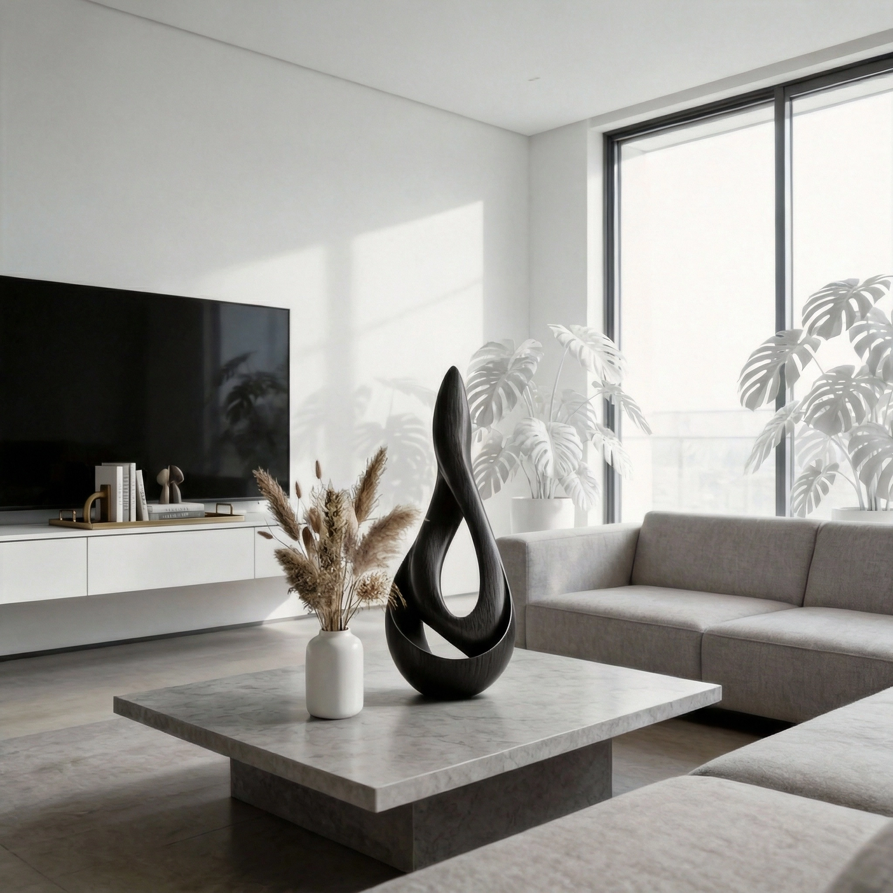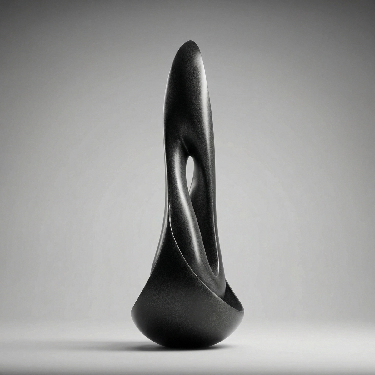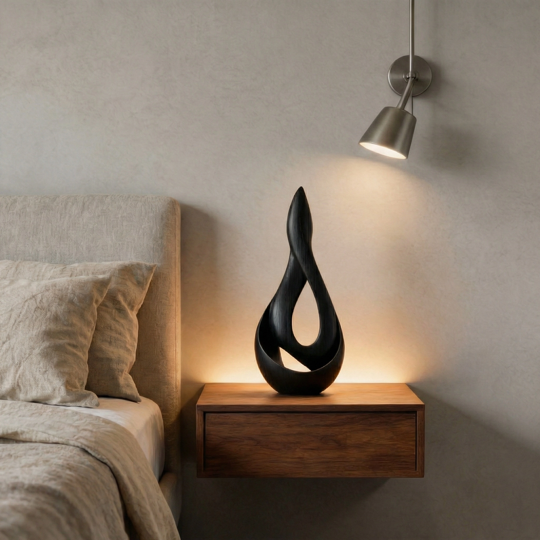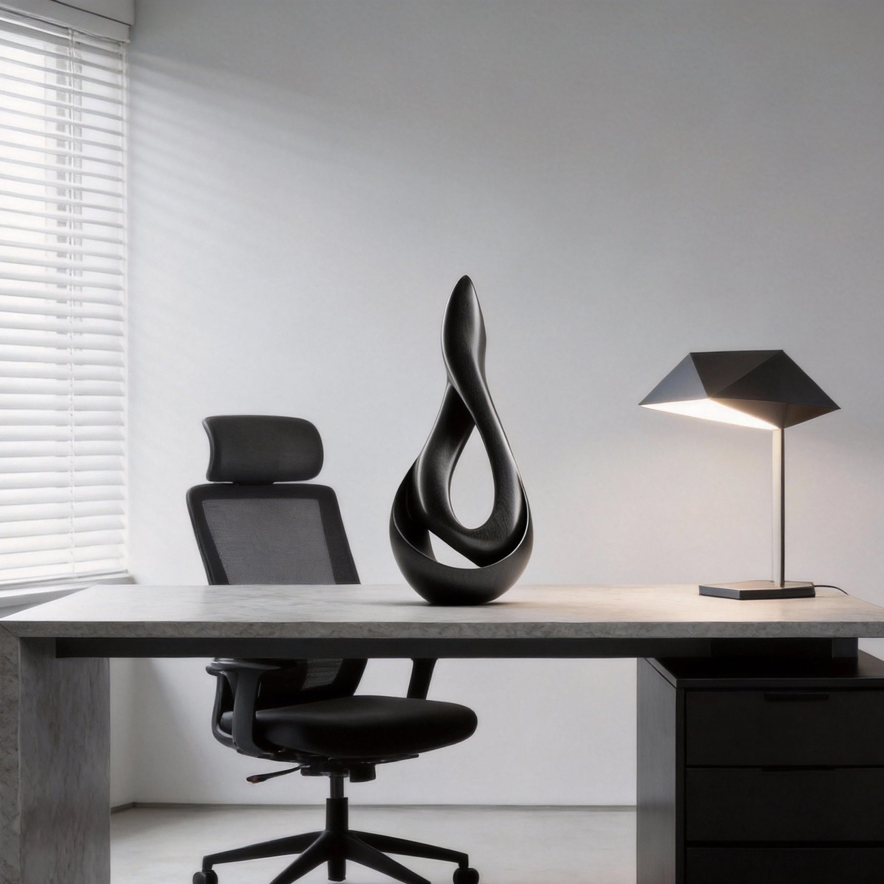 A handcarved art object defined by its seamless, twisting curves, this modern sculpture is a sleek luxury home decor piece that infuses your space with quiet dynamism.-