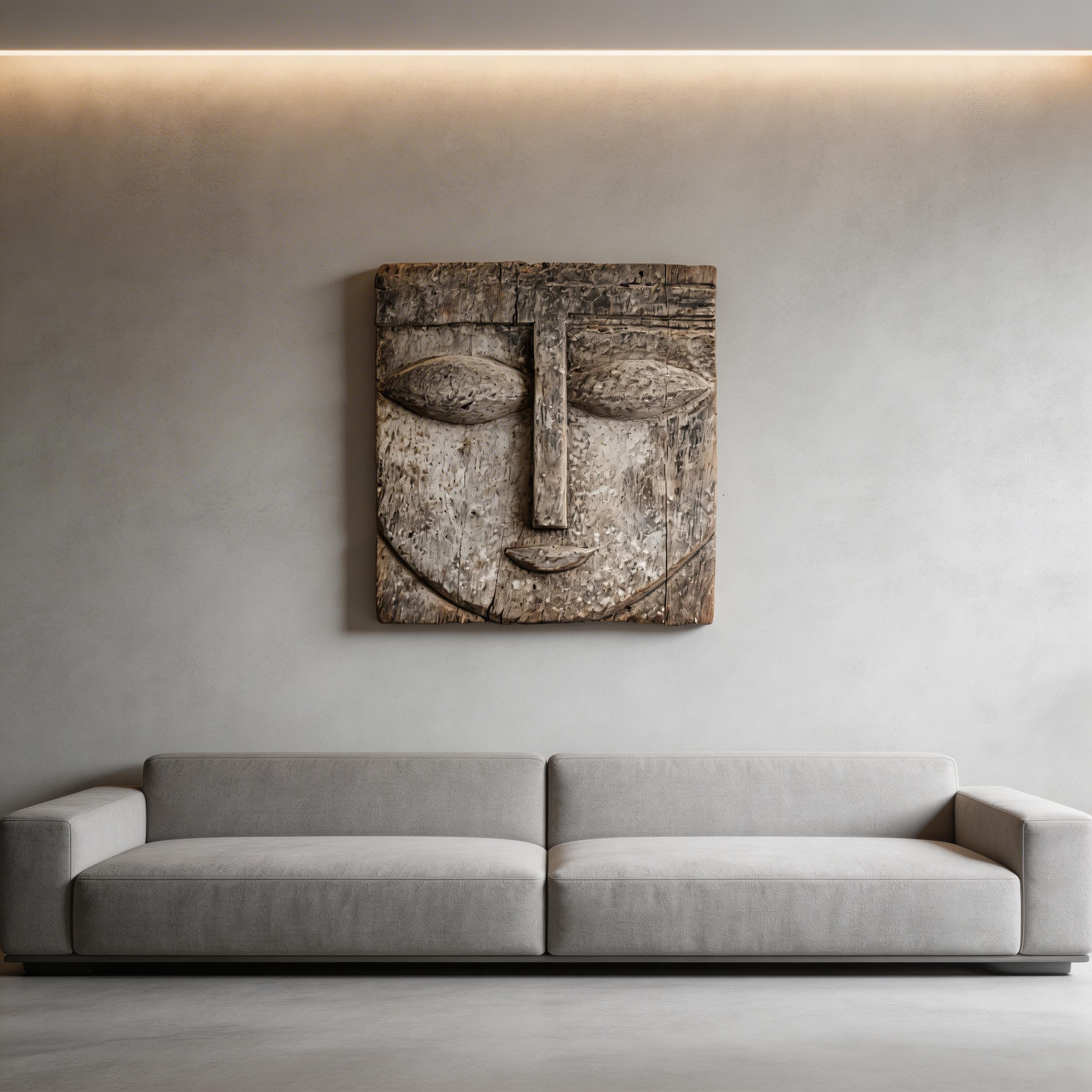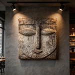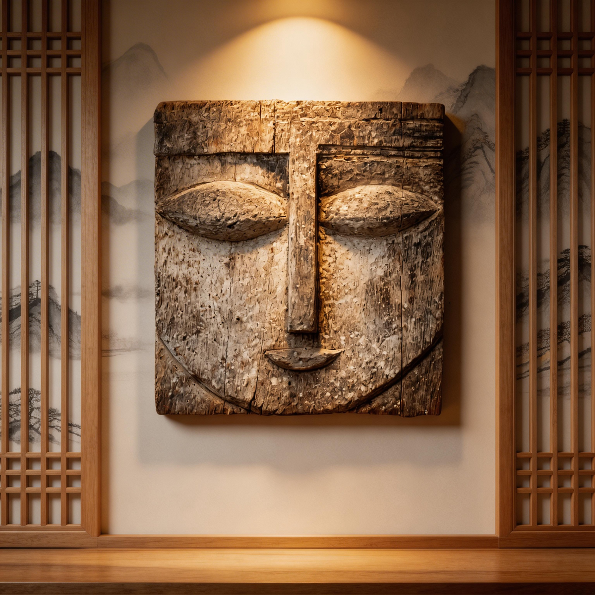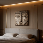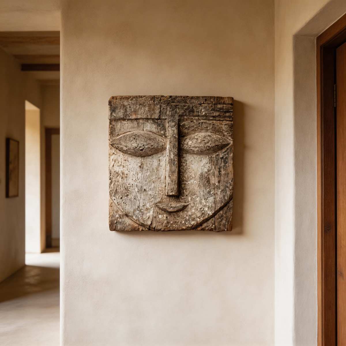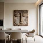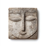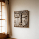 Square Serenity: The Weathered Wood Relief Mask|Wood Sculpture