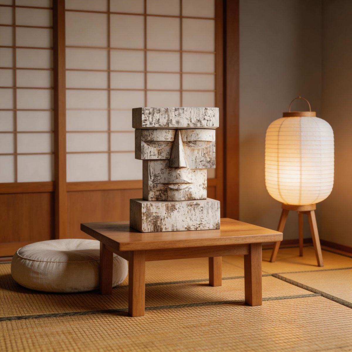 Ancient Echo: Moai-Inspired Totem| Wood Sculpture